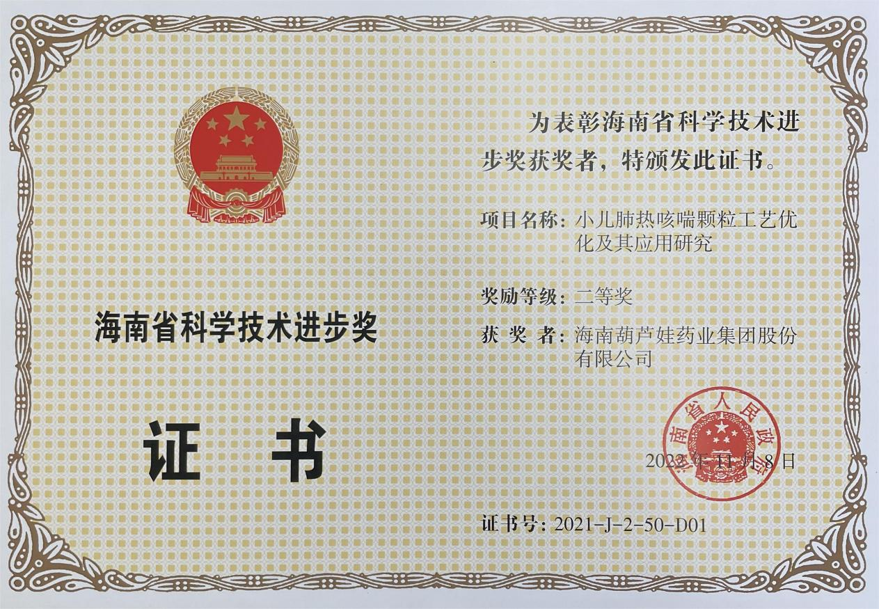 11月15日,海南省科学技术奖励大会在海口召开,揭晓了2021年度海南省科学技术奖。海南人生就是博药业集团股份有限公司凭借“小儿肺热咳喘颗粒工艺优化及其应用研究”,荣获海南省科学技术进步奖二等奖。项目主要完成人有刘景萍、刘全国、胡俊斌、李培湖、刘萍、王家、陈克领、何彦博。