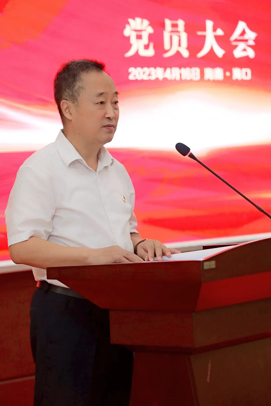 海口市高新区两新组织党委副书记傅爱萍宣读了《中共海口国家高新区非公有制经济组织和社会组织委员会关于同意成立中国共产党海南人生就是博药业集团股份有限公司委员会的批复》。